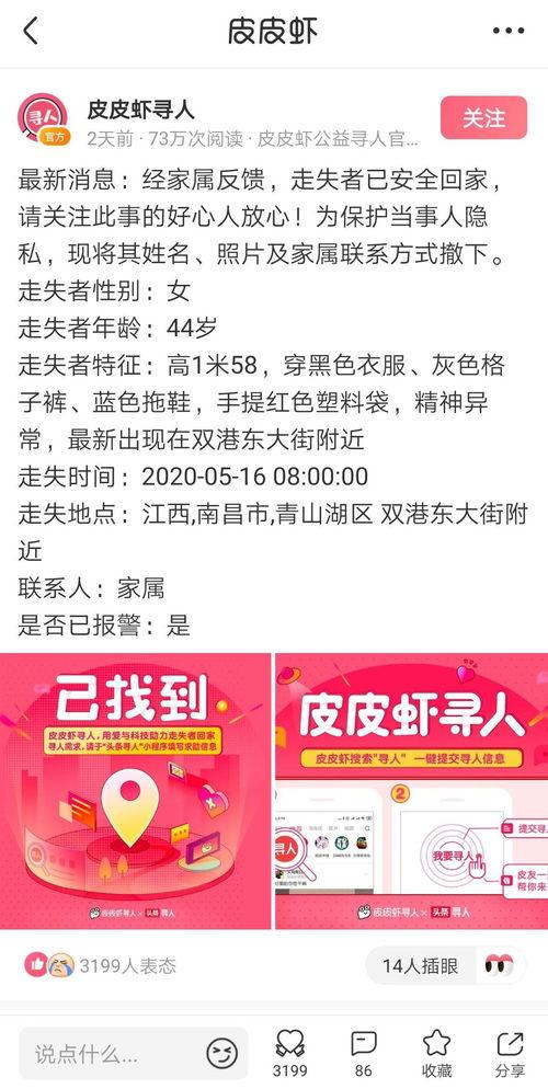 哎呀,你有没有想过,在茫茫人海中,突然发现一个失散多年的亲人或者朋友,那会是多么激动人心的事情呢?别急,今天就来告诉你,如何参加头条寻人,让你的心不再孤单,让失散的亲人团聚!